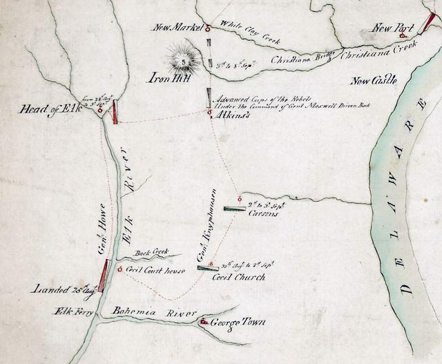 On Sept. 3, a small clash with the British invading force took place at the Battle of Iron Hill, also known as the Battle of Cooch’s Bridge, which was on a branch of Christiana Creek near Newark, Del. A section of Pennsylvania’s 11th Regiment joined with Pennsylvania and Delaware militia troops under Brigadier General William Maxwell in the attack on British and Hessian troops. After seven hours of fighting, the Americans ran low on ammunition and found it hard to resist a counter-attack by the enemy. It turned into a rout for the Americans and enabled Howe’s forces to move relatively unobstructed into Pennsylvania.